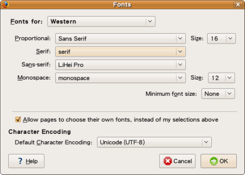 要將 Firefox 的字體變成 LiHei 體前 , 要先將 LiHei 的字體,加入到系統中,