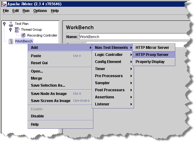 WorkBench > Add > Non-Test Elements > HTTP Proxy Server