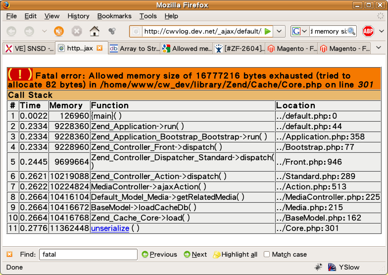 Fatal error: Allowed memory size of m bytes exhausted (tried to allocate e bytes) in Unknown on line n